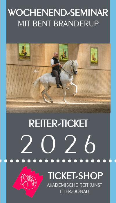 Reiter-Ticket inkl. Theorie für Samstag und Sonntag beim Wochenend-Seminar mit Bent Branderup am 11./ 12.. April 2026 im Aktivstall TM19 in Senden/ Wullenstetten – die Boxenmiete muss bar vor Ort an den Stallbesitzer entrichtet werden.